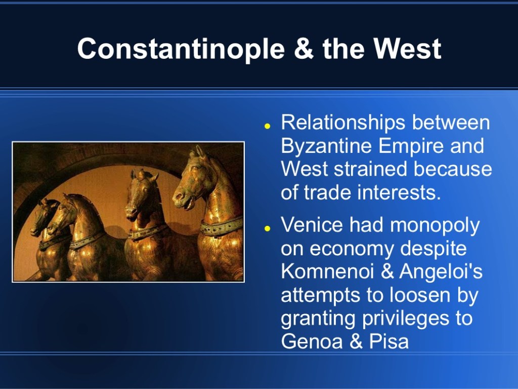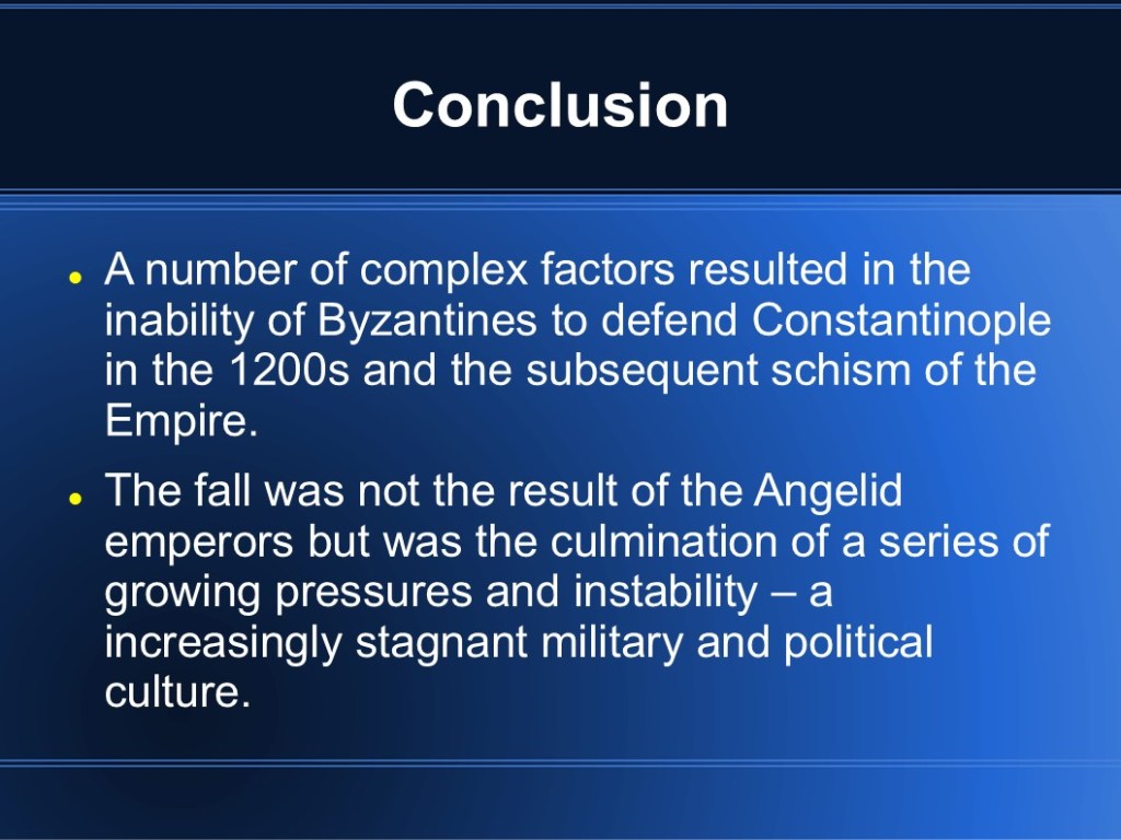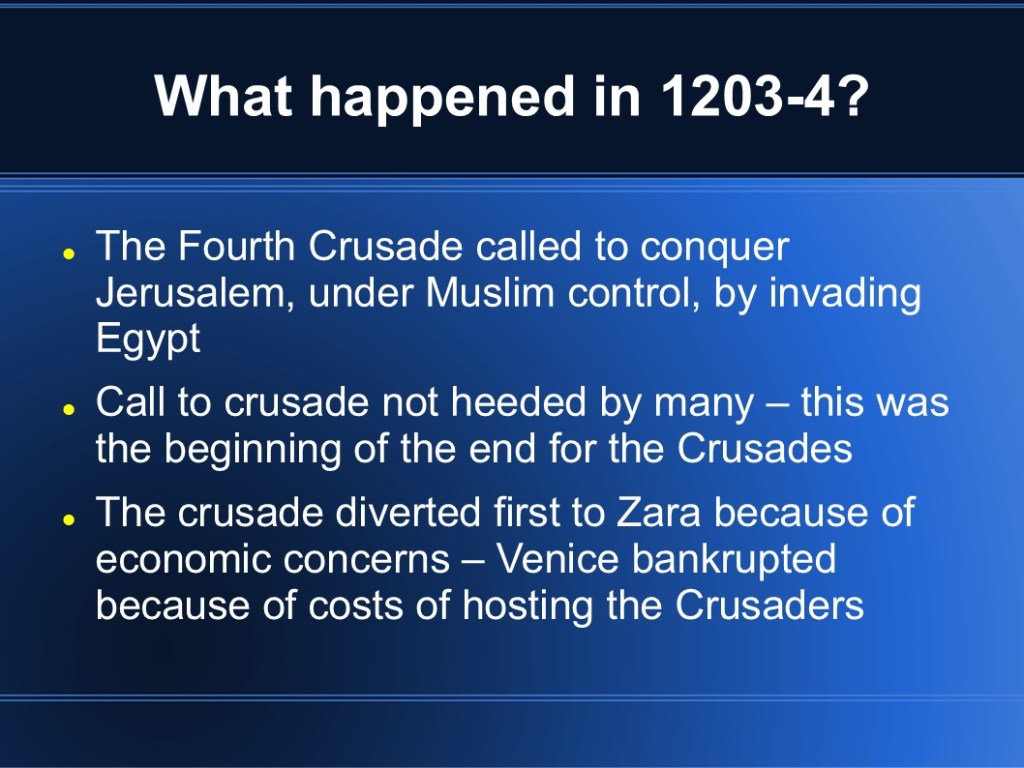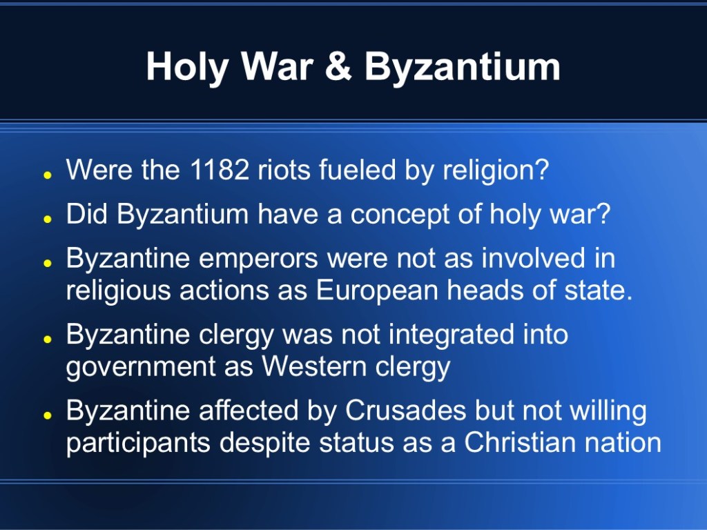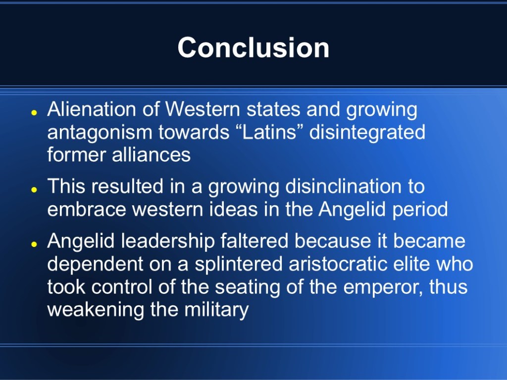 In 2009, I finished my MMA in Military History. My capstone project focused on medieval Byzantium and the Fourth Crusade. While I’m sure it’s out of date so many years later, I’m sharing the original presentation in the event that it may be of interest to someone. (Though I warn you, it was so long ago that my knowledge has faded.)