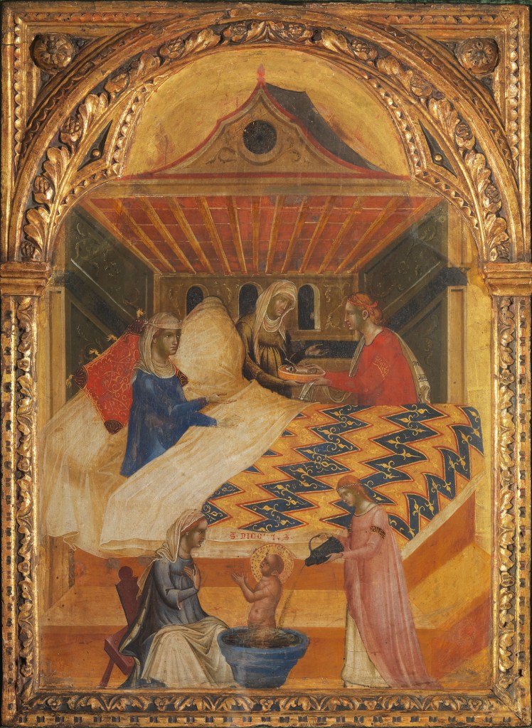 Paolo Veneziano, The Birth of Saint Nicholas, about 1340-1348. Courtesy of the Uffizi. More information here.